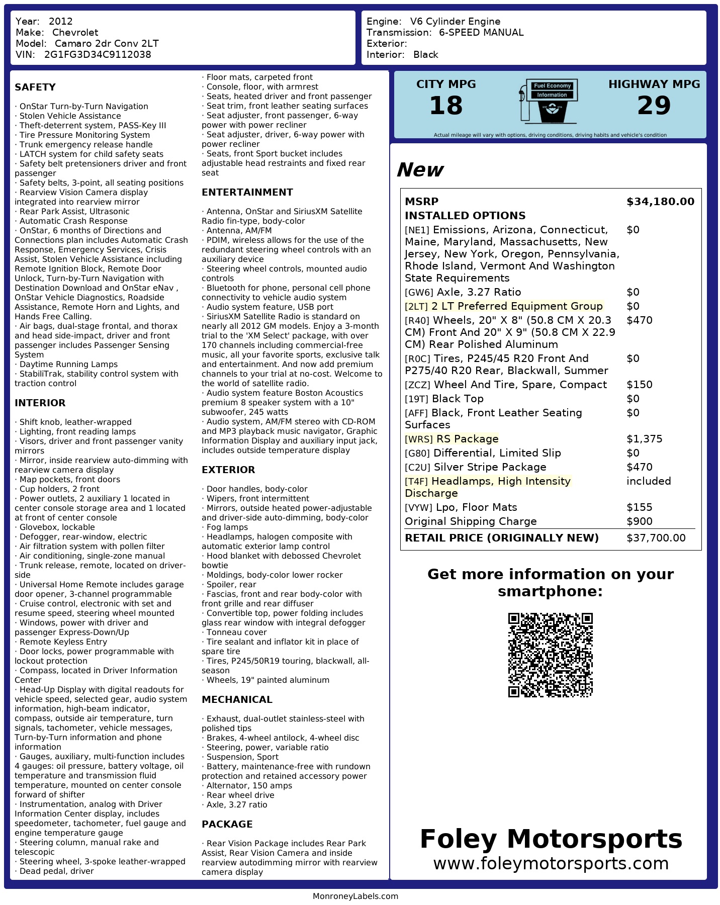 Foley Motorsports site uses AI generated Vehicle Descriptions for some vehicles, a program used to automatically generate vehicle descriptions for vehicles using the system information from the VIN decoder vehicle options and advises that the details may not be fully accurate.